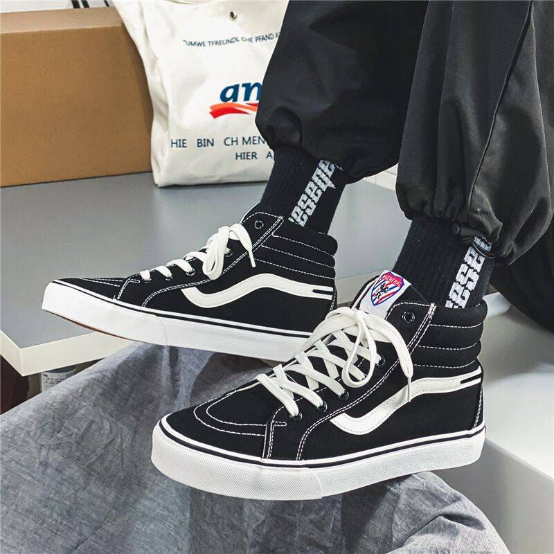 2021年男鞋新款潮流港风帆布鞋男高帮小众设计百搭万斯能板鞋男