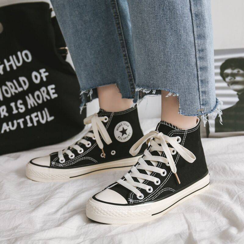 春季新款复古黑色帆布鞋男鞋韩版休闲高帮鞋ins潮流学生板鞋男