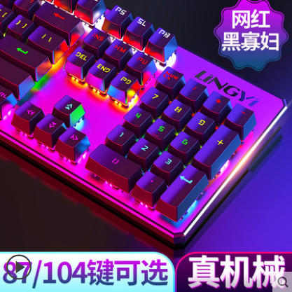 灵逸黑寡妇有线游戏真机械键盘青轴黑轴红轴朋克电脑笔记本104键