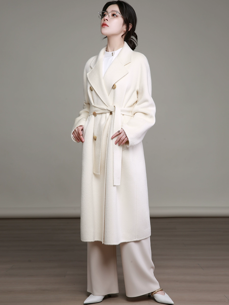 2020年秋冬新款韩版双面呢手缝长款羊毛大衣单排扣中长款毛呢外套