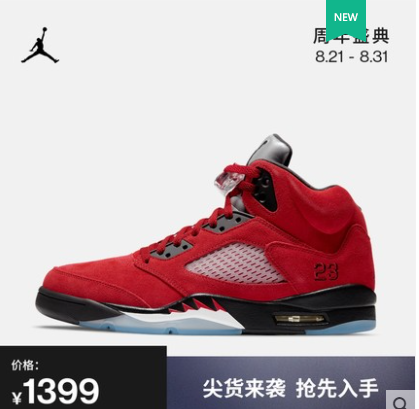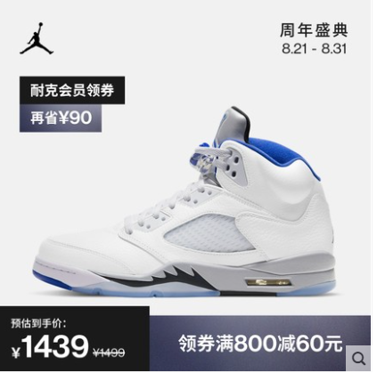 Jordan官方AIR JORDAN 5 RETRO复刻男子运动鞋缓震轻盈经典DD0587
