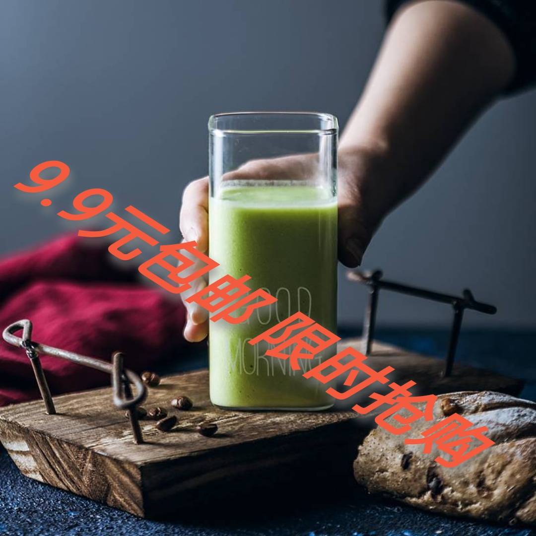 创意单层ins玻璃水杯 单层方形goodmornng牛奶杯牛奶早餐杯