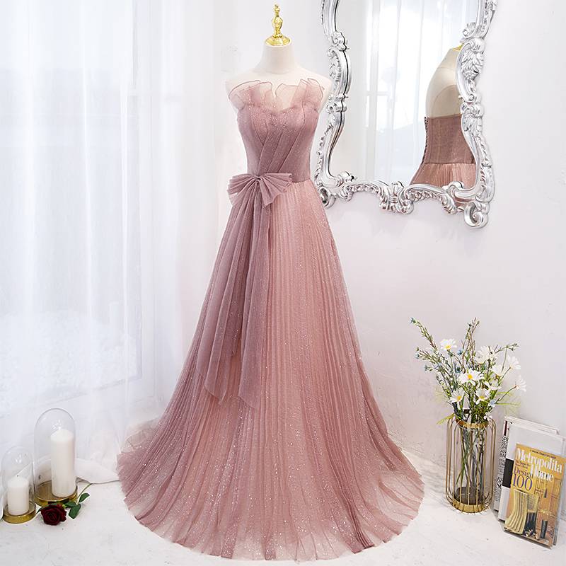 粉色晚礼服裙女轻奢仙气高端小众抹胸长款优雅主持人连衣裙高级感