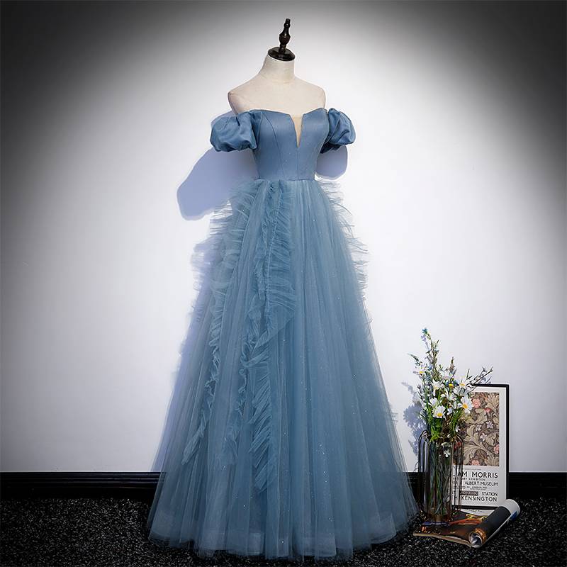 蓝色抹胸晚礼服裙女2021新款宴会高端气质主持人端庄大气优雅高级