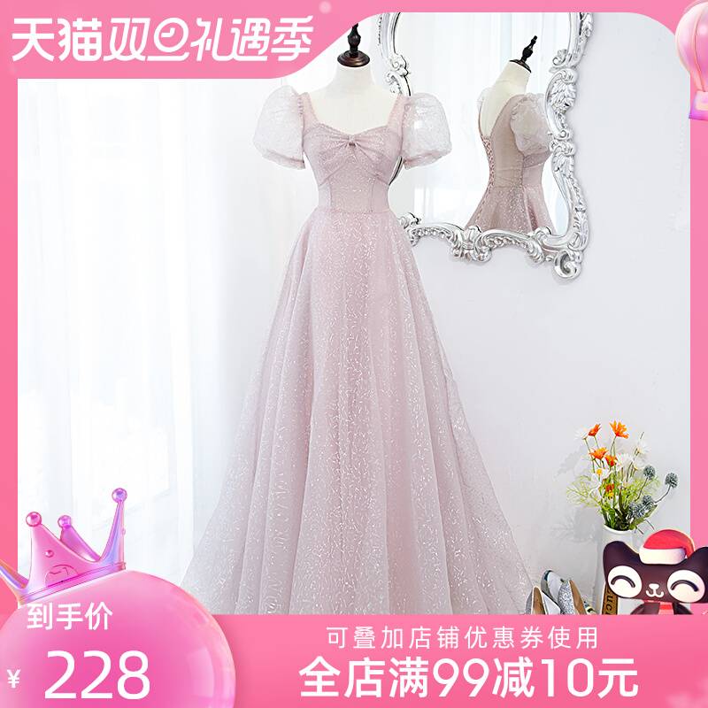 粉色晚礼服裙女2021新款气质声乐艺考小众高端轻奢主持人宴会优雅