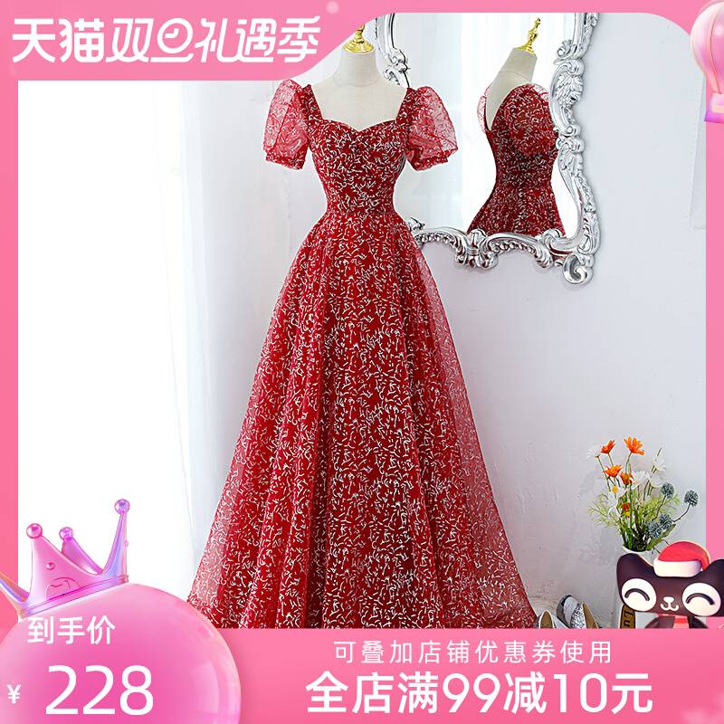 红色晚礼服裙女2021新款法式宴会结婚新娘敬酒服轻奢仙气高端长款