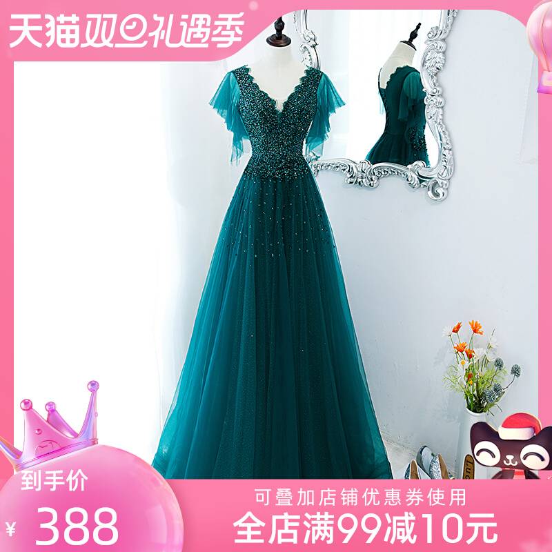 墨绿色晚礼服裙女仙气高端年会主持人长款轻奢宴会小众艺考连衣裙