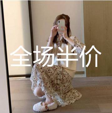2020夏季新款品牌女装v领五分袖荷叶裙chic淑女雪纺连衣裙