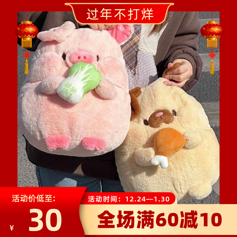 超萌可爱鸡腿狗玩偶网红卡通白菜猪毛绒玩具少女粉色兔子生日礼物
