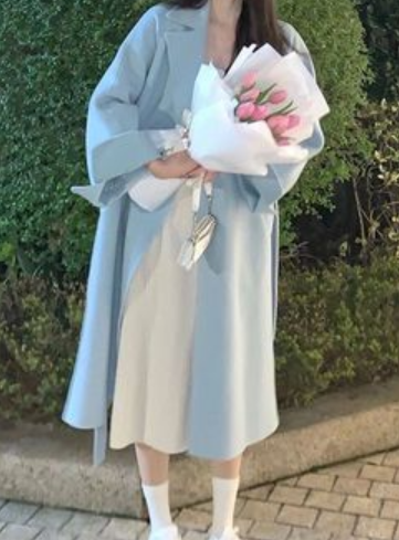 蓝色大衣女中长款秋冬2022年新款流行修身显示腰带气质妮子外套