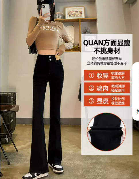 黑色喇叭裤女秋冬2022年新款爆款高腰阔腿冬季加绒裤子微喇牛仔裤