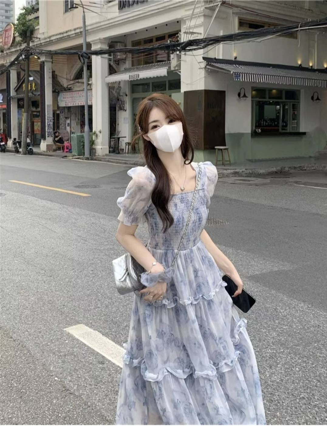 温柔风茶歇法式桔梗长裙2024夏季气质仙女超仙收腰方领碎花连衣裙