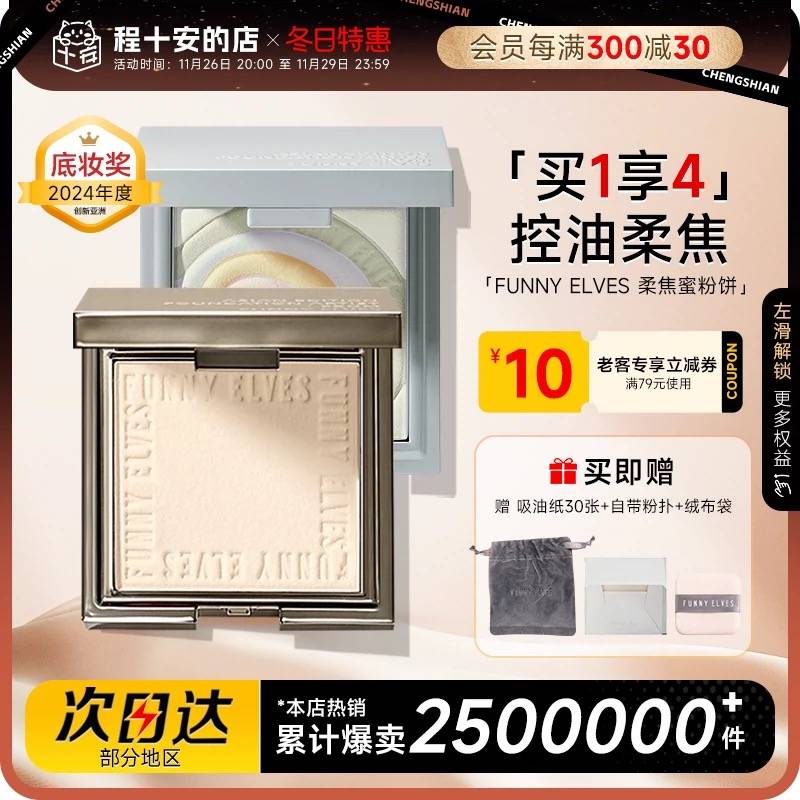 程十安的店funnyelves方里粉饼控油定妆持久补妆FE房里蜜粉饼散粉