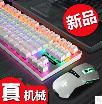 游戏小型机械键盘鼠标套装 牧马人女生键鼠套装青轴黑轴外设87键