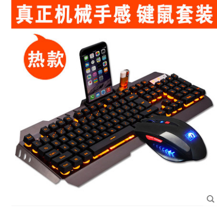 游戏有线键盘鼠标耳机三件套牧马人电脑家用金属机械手感键鼠套装