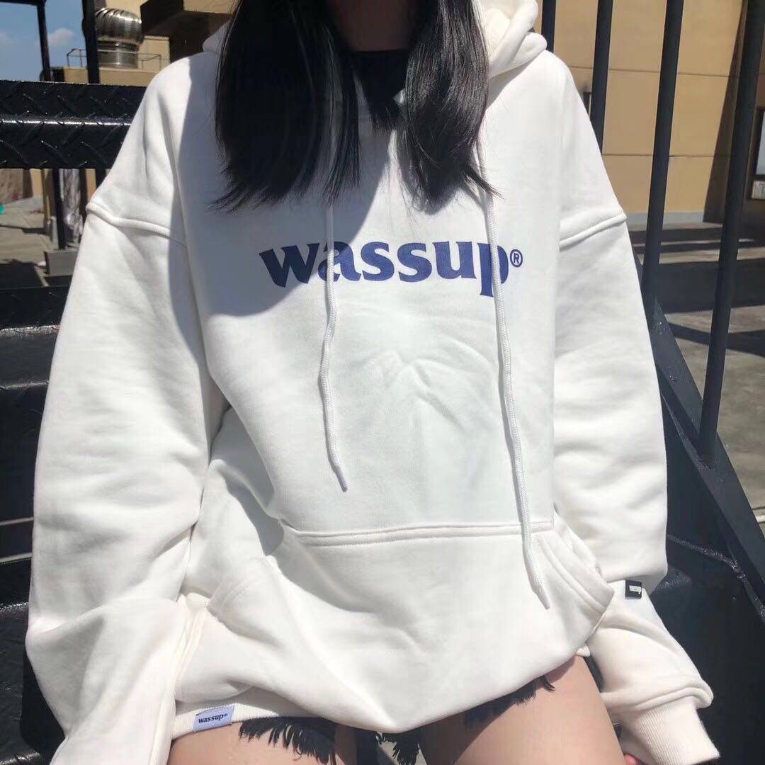 WASSUP国潮牌经典五色基础logo连帽卫衣男女宽松情侣帽衫
