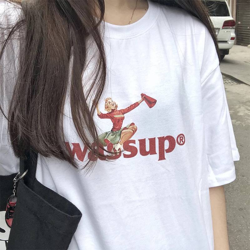 WASSUP海报女郎 复古T恤男女宽松纯棉短袖