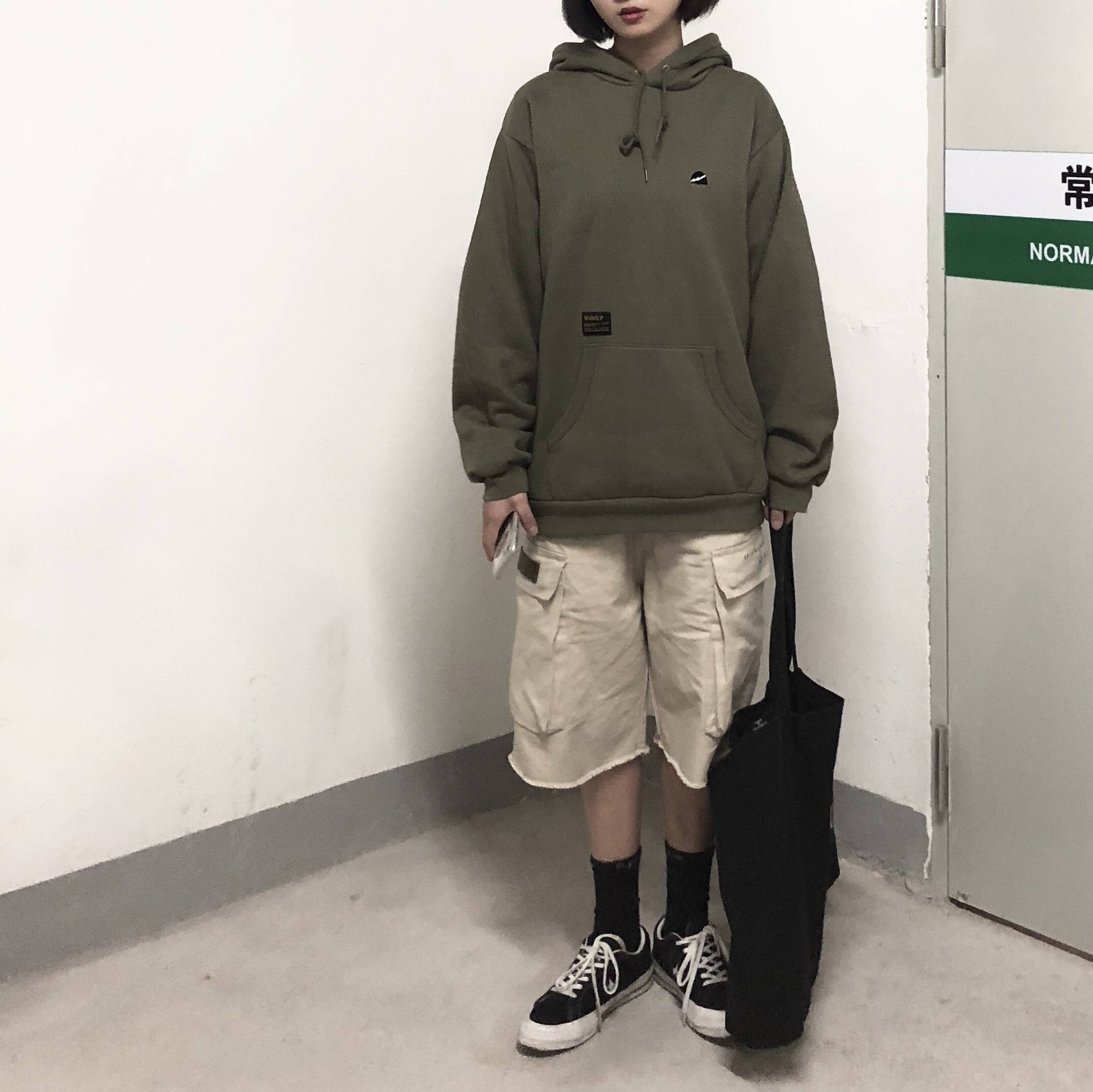 WASSUP17AW双色连帽加绒卫衣宽松套头休闲帽衫闪电字母印花男女