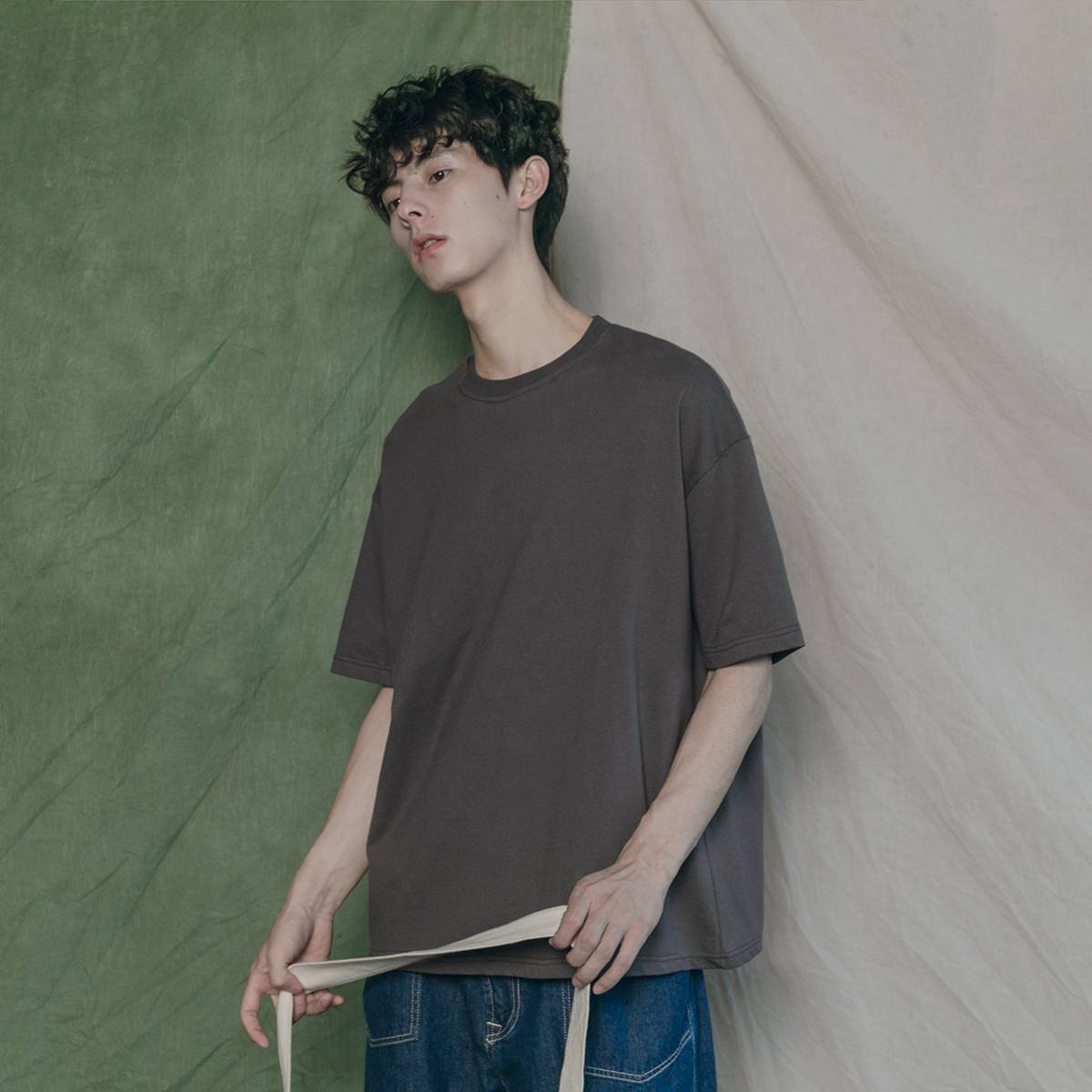 韩版纯色基础款百搭圆领纯棉T恤衫潮人男女宽松BF简约打底短袖