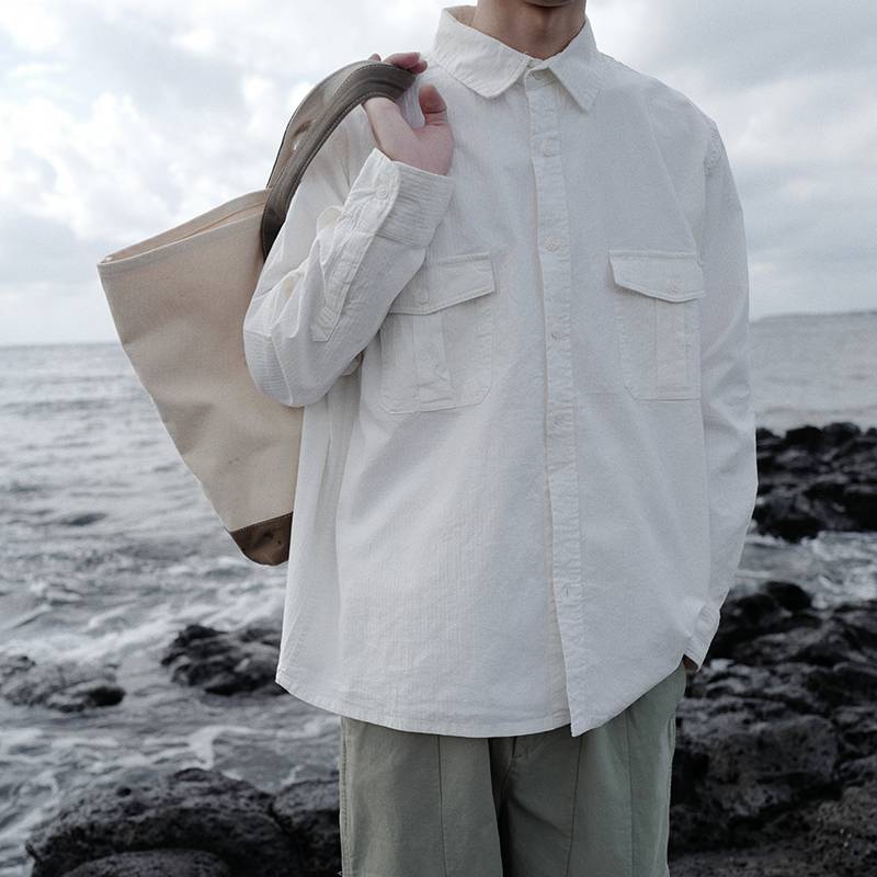 自制法式水洗春季美式复古宽松工装长袖衬衫休闲上衣男女