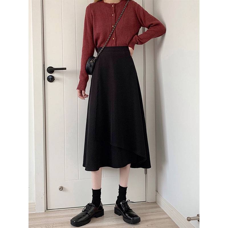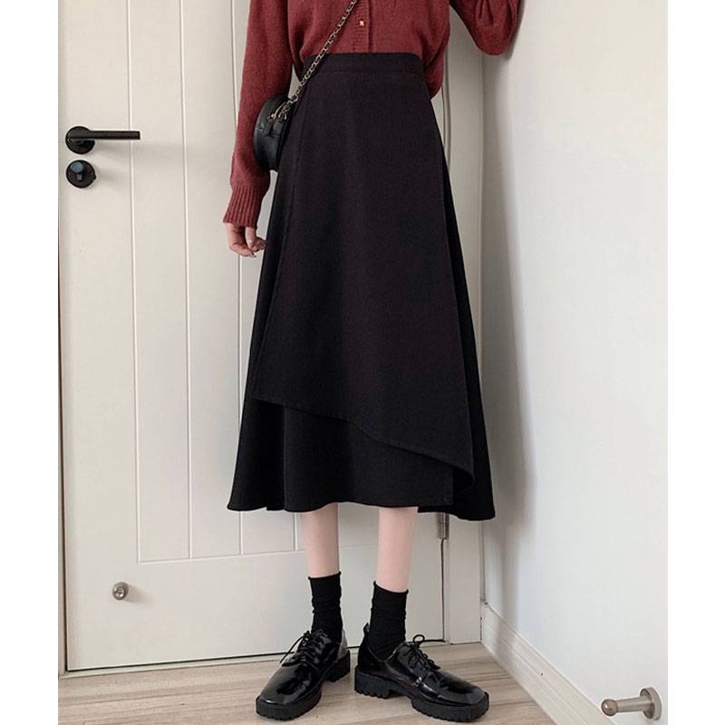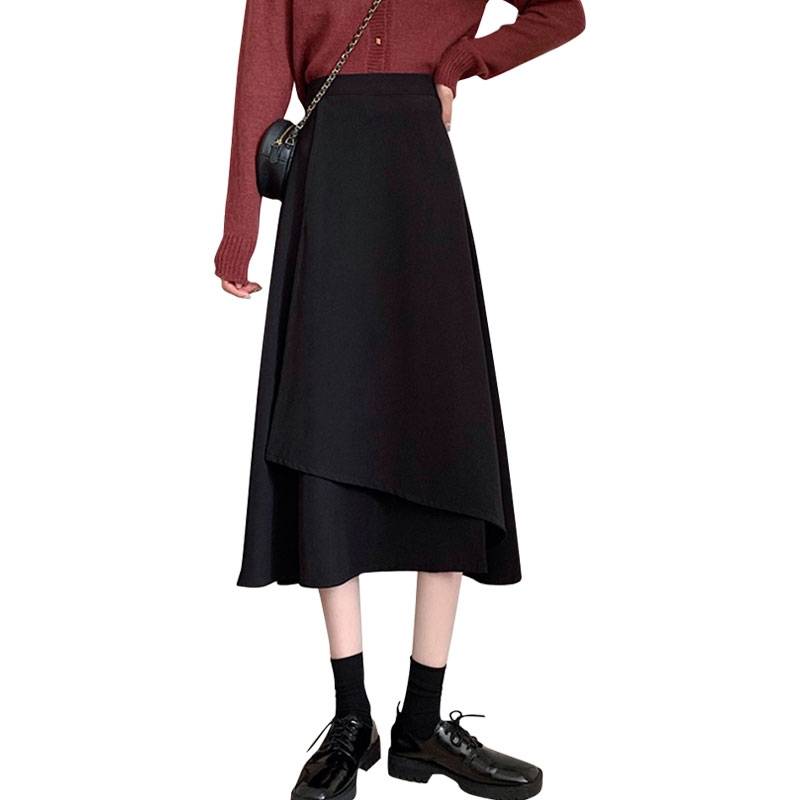 不规则高腰半身裙女春秋2022年新款a字裙伞裙设计感小众黑色裙子