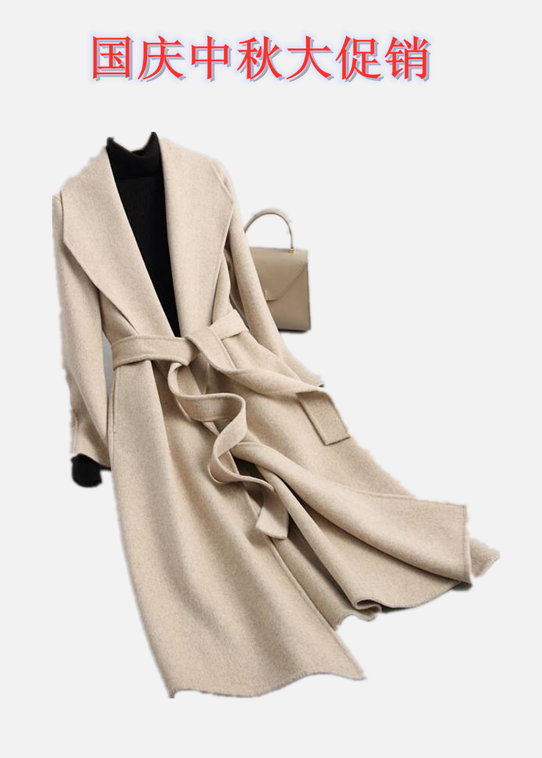 2019新款毛呢外套女装中长款小个子双面呢羊毛绒大衣腰带显瘦