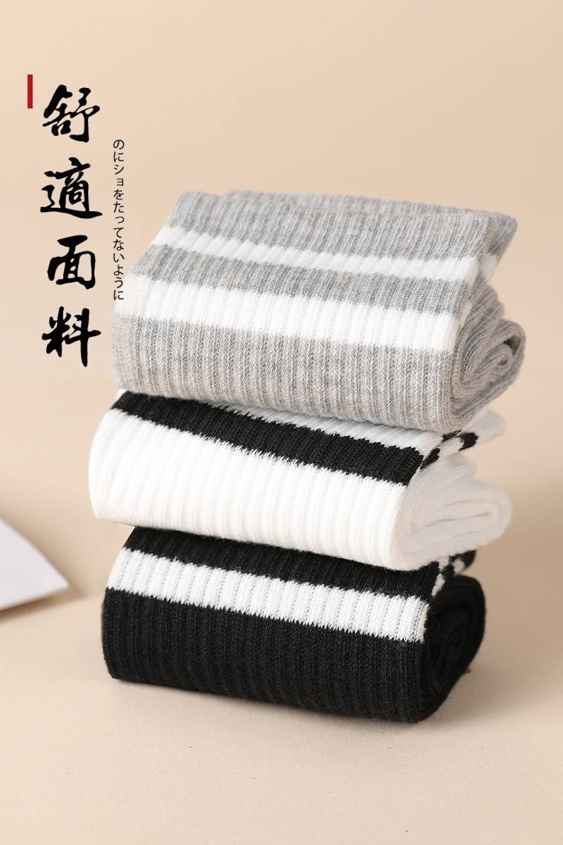 白黑色袜子女士夏中筒袜ins潮网红款春秋季外穿薄棉袜长筒运动