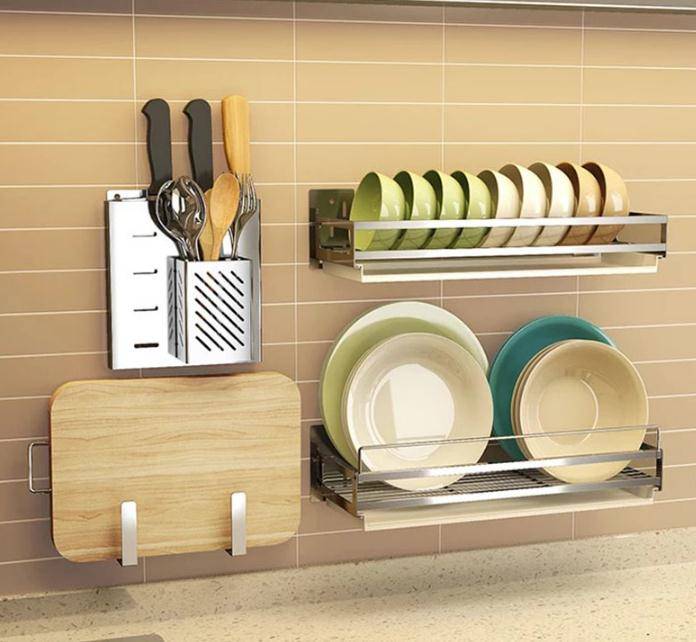 厨房置物架宜家免打孔菜板碗碟架 不锈钢调料刀具刀架壁挂收纳架