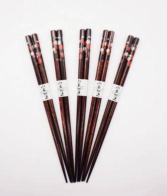 日式实木筷 木质尖头筷子5双 家用尖头竹木筷 筷子礼盒装 尖头筷