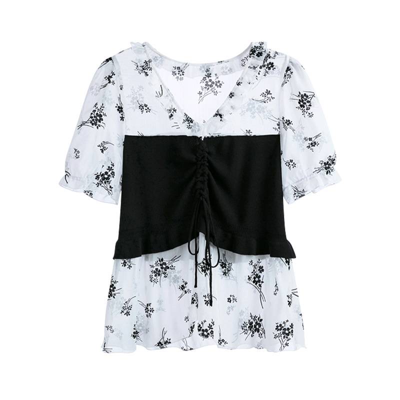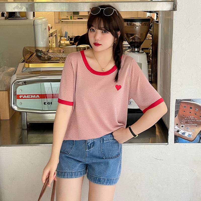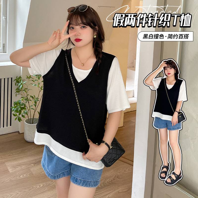 200斤大码女装v领泡泡袖上衣夏季新款胖mm减龄针织短袖t恤女