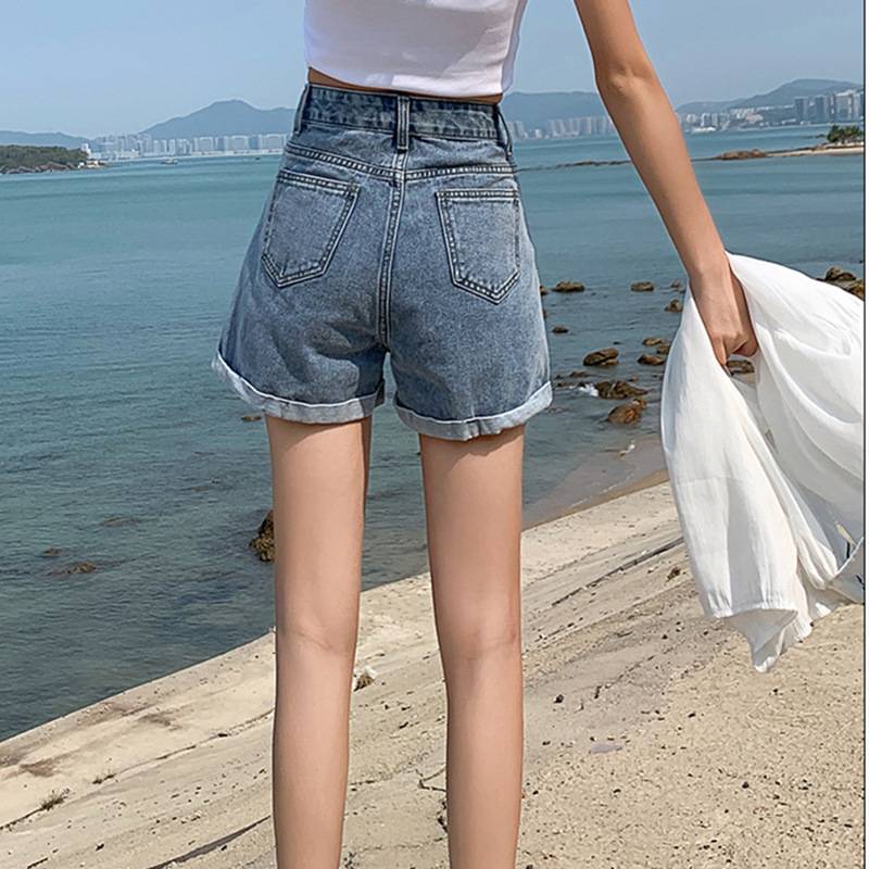 牛仔短裤女2022新款高腰阔腿宽松直筒显瘦夏季白色