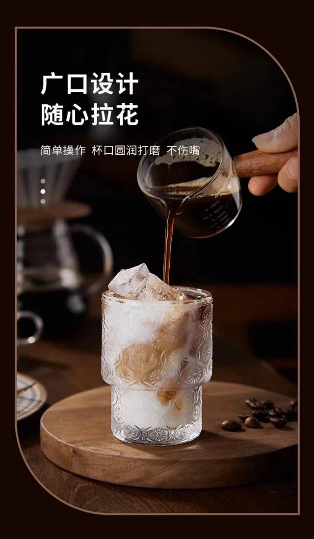 染可浮雕复古玻璃杯 无铅玻璃材质➕厚实质感➕浮雕杯身 可做杯子&桌面复古小花瓶 多功能多用途