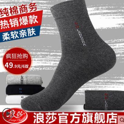 袜子男纯棉浪莎男袜中筒棉袜男士袜子防臭吸汗短袜中厚款长袜四季