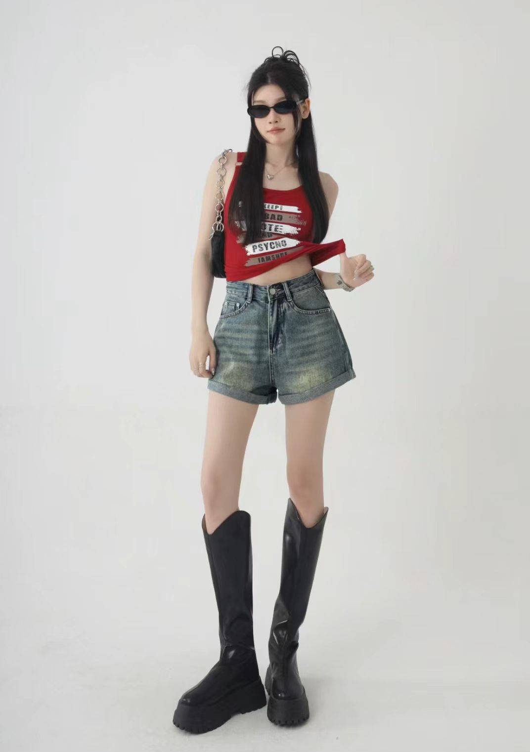 女童裙春韩版小女孩个性洋气无袖毛边气质收腰牛仔裙子网红