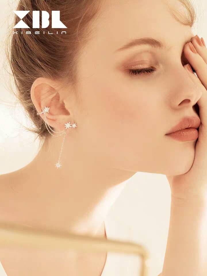 925银针设计感六芒星耳钉女2020新款潮气质个性耳夹网红耳环耳饰
