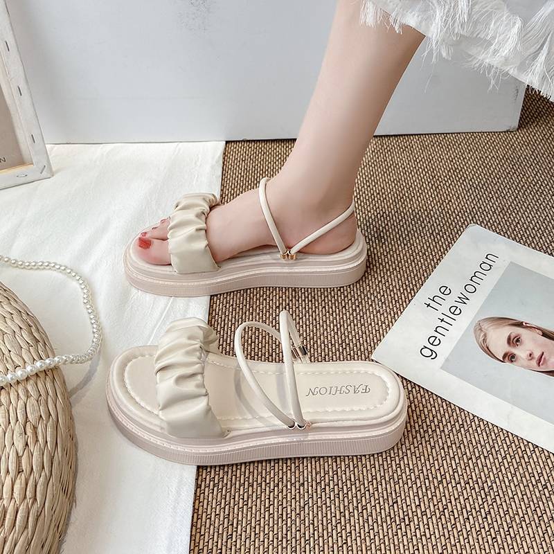 凉鞋女夏平底2023年新款百搭网红仙女风配裙子两穿罗马厚底凉拖鞋