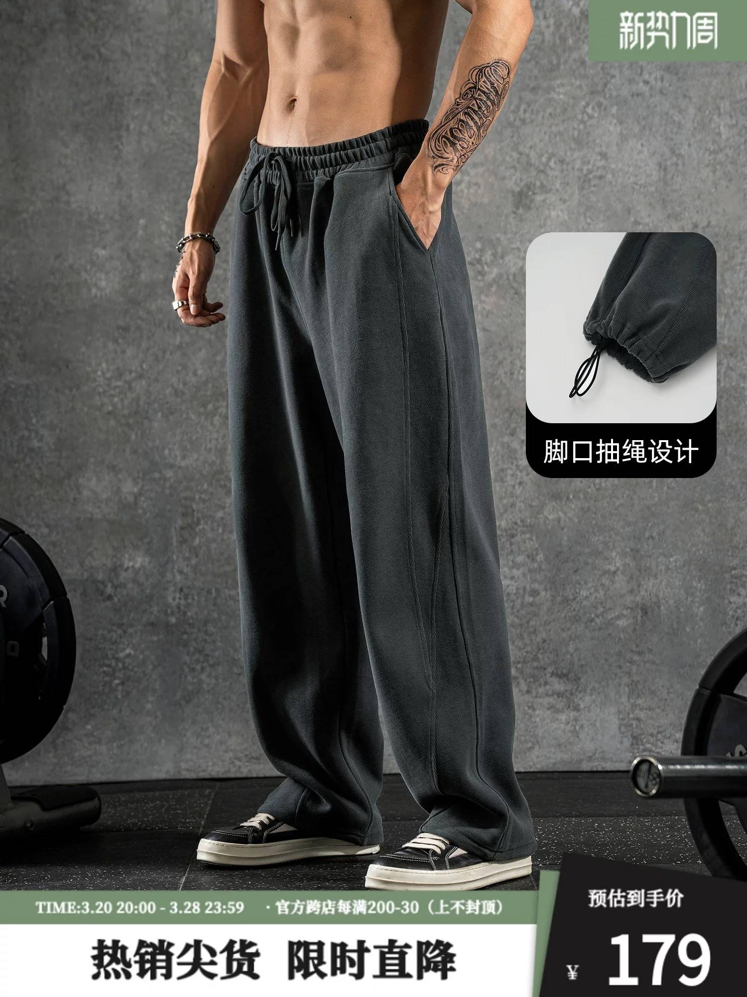 鹿家门美式针织直筒卫裤弯刀裤子休闲宽松大码男士运动长裤健身裤