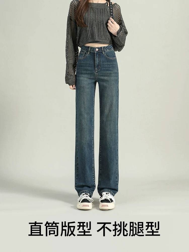 窄版直筒牛仔裤女2025新款爆款女士阔腿高腰显瘦小个子春秋款裤子