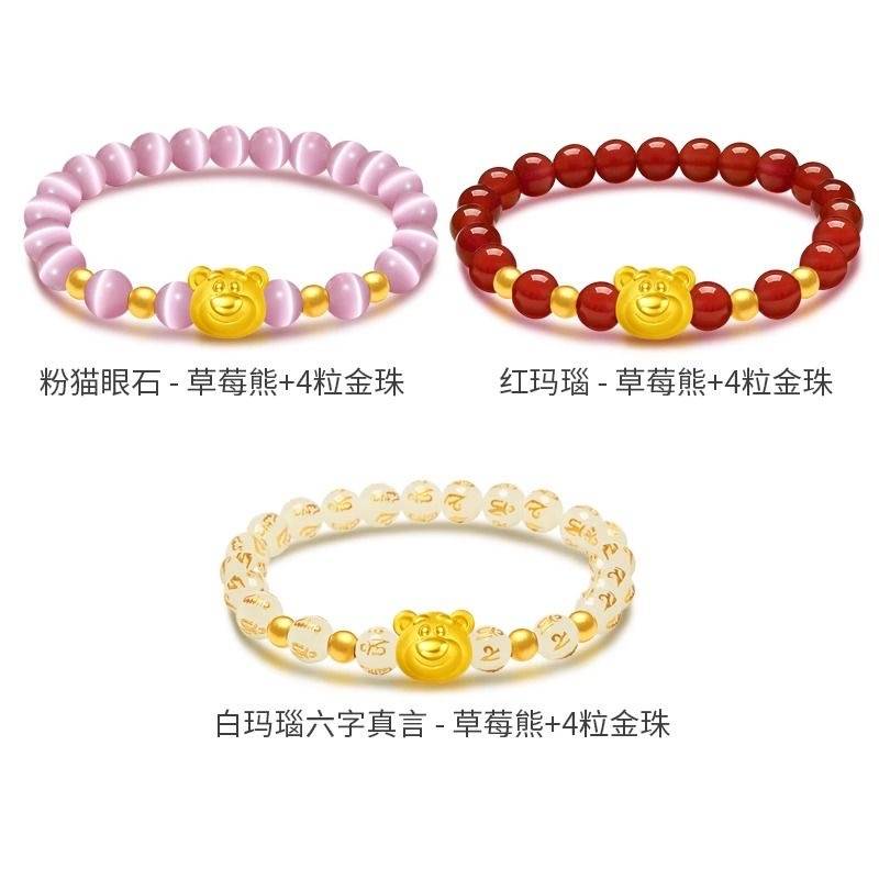 正品真金999草莓熊转运珠手链女小熊金饰玛瑙手串足金