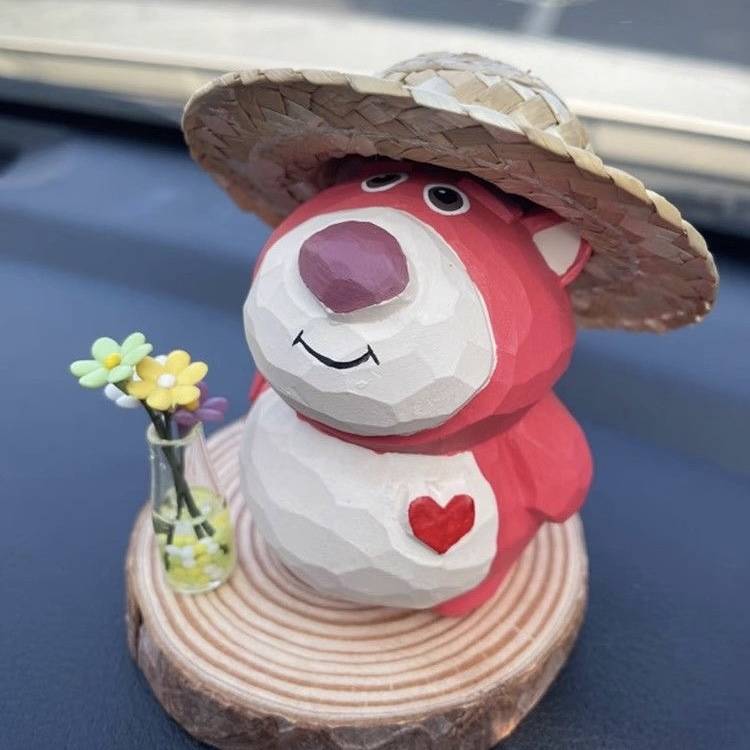 车内饰品摆件草莓熊木雕中控台解压电车上可爱车载摆件