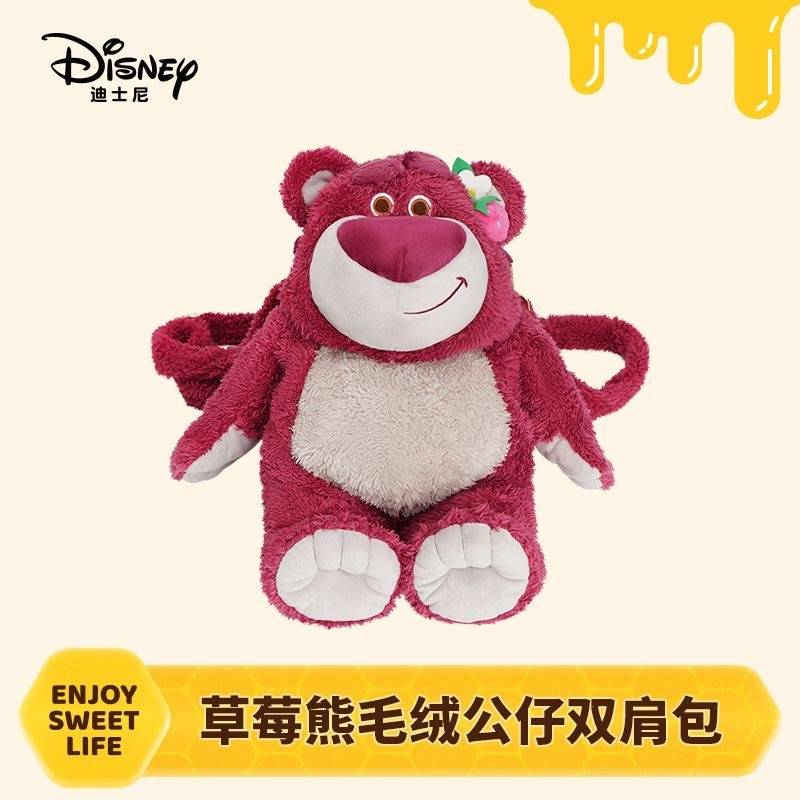 迪士尼正品草莓熊毛绒公仔包斜挎包双肩包玩具玩偶