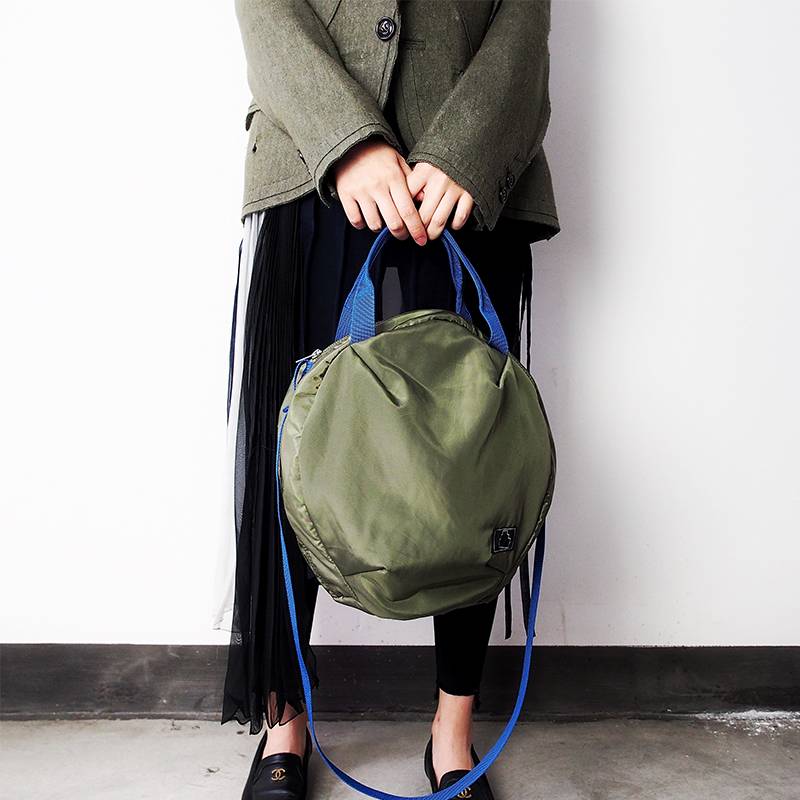 house军绿圆形手提单肩斜挎尼龙包时尚手拿化妆随身包包2018新款