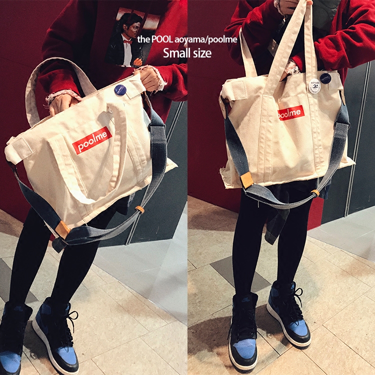 pool lab.时尚拉链单肩手提帆布包男女新款托特包斜挎学生旅行袋