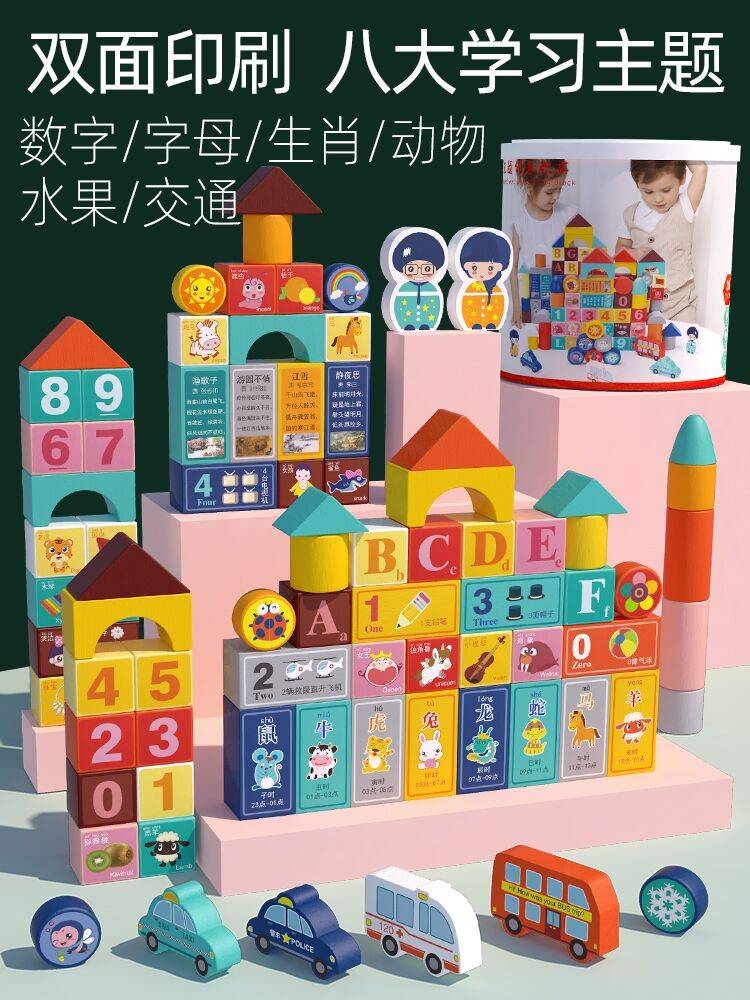 儿童积木木头拼装宝宝玩具大颗粒益智力男孩女孩婴儿早教