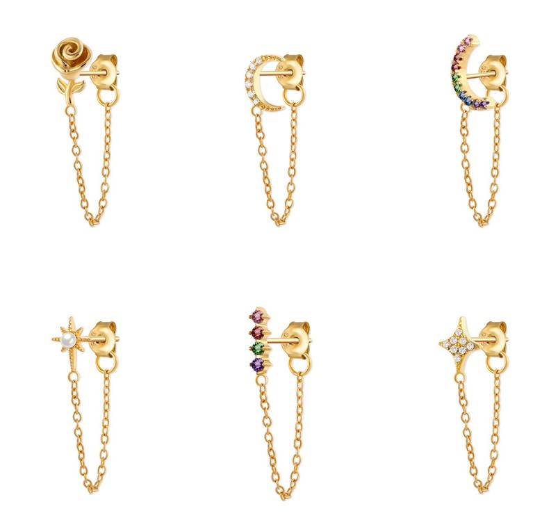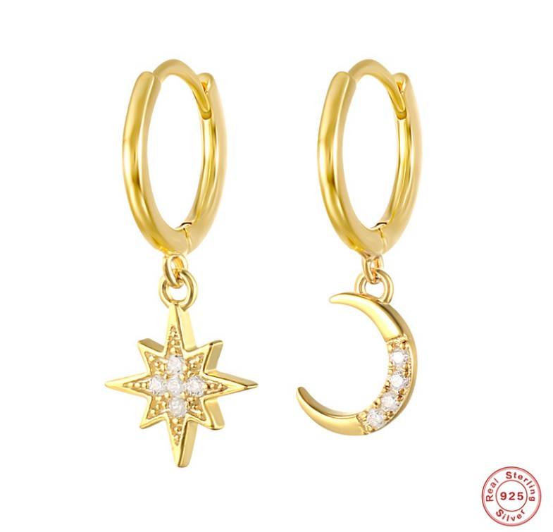 S925纯银INS风星月不对称耳环 欧美轻奢时尚百搭创意款耳扣耳饰品