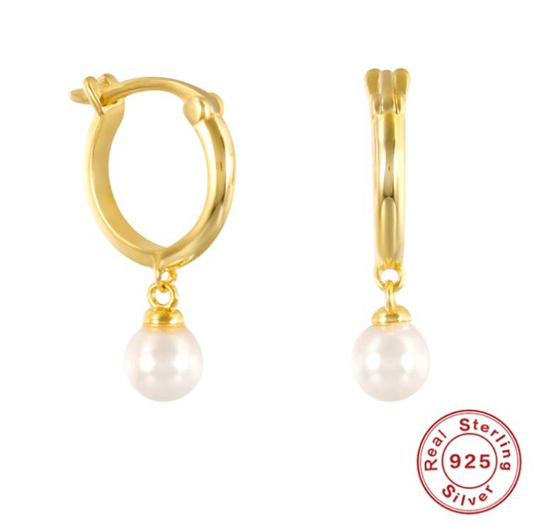 S925纯银珍珠耳钉 时尚潮人INS经典简约圆环淡水珍珠耳钉气质耳饰