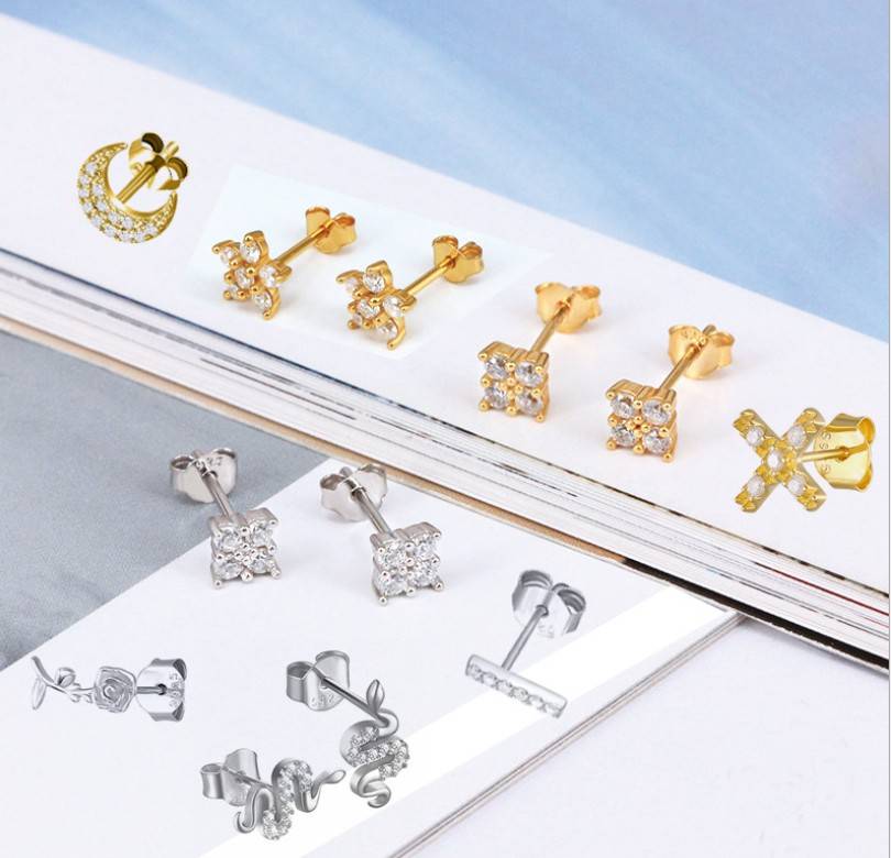 S925纯银马眼镶钻耳钉 跨境热销小巧简约创意款ins风耳环女耳饰品