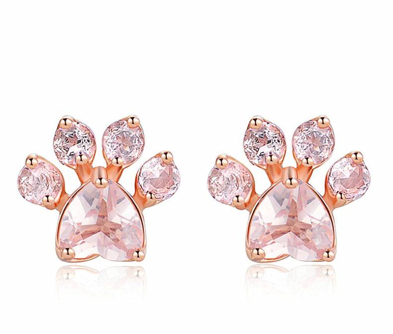 时尚脚印粉晶锆石镀玫瑰金耳环 欧美热销耳钉耳饰