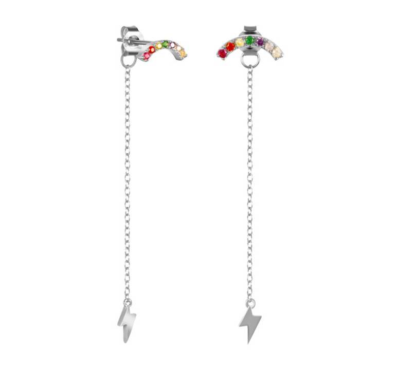 S925纯银流苏耳环 欧美时尚简约创意款INS风彩钻彩虹流苏闪电耳线