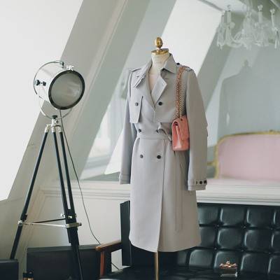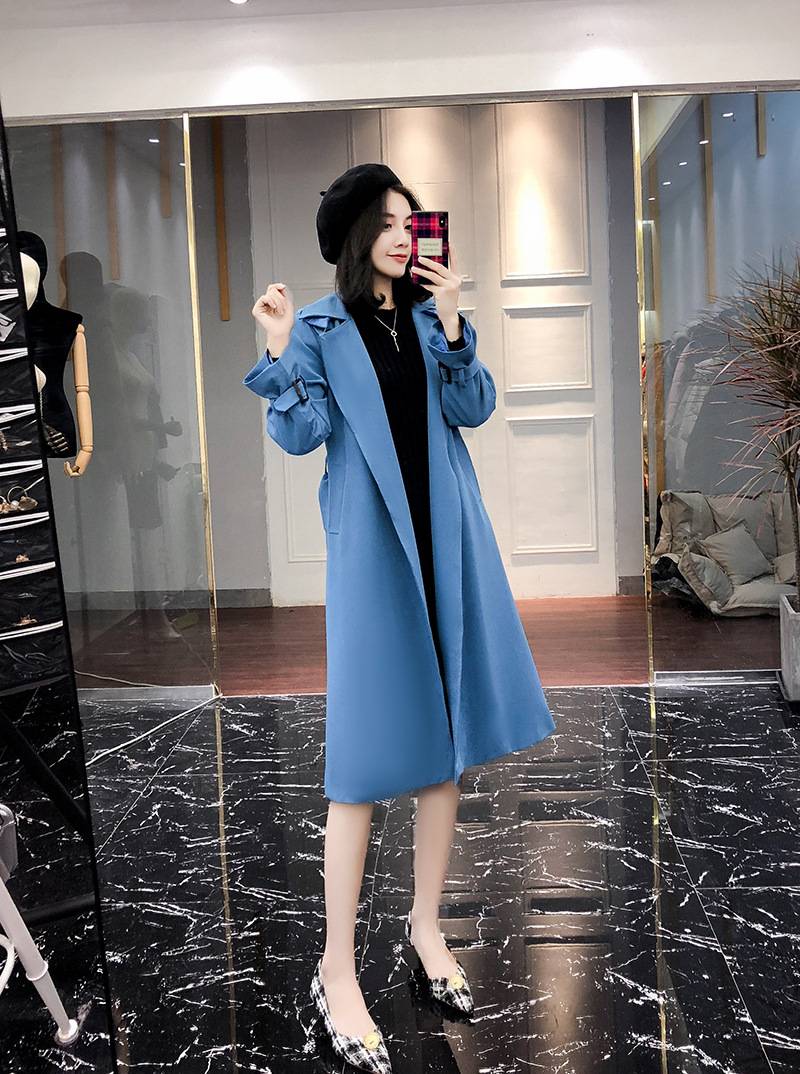 2018春秋新款港风过膝风衣中长款收腰显瘦韩版女装卡其色大衣外套